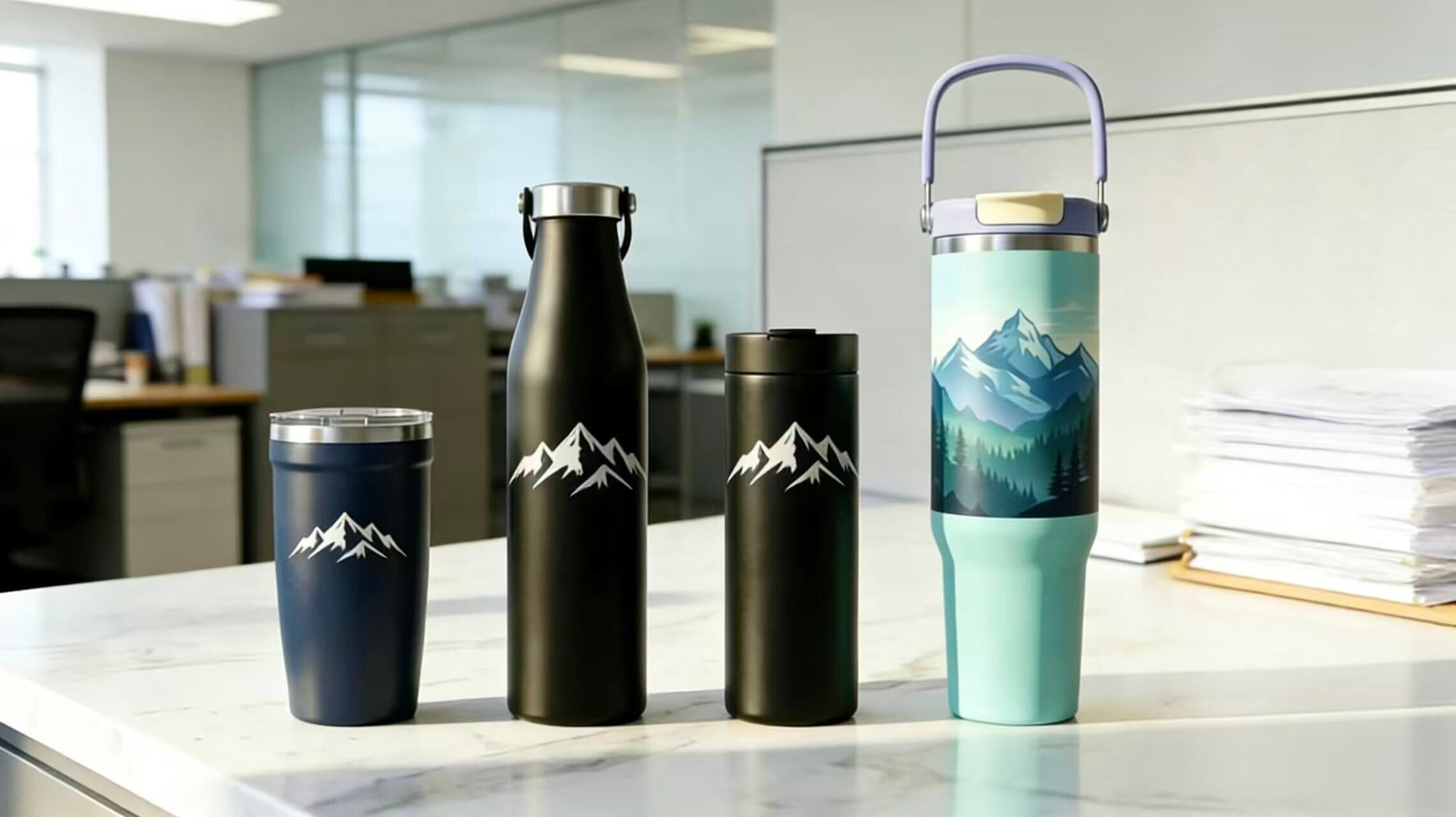 Business cards get lost. Branded pens run dry. Our custom insulated tumblers stay on desks, in bags, and in daily use for years — keeping your brand front and center, every single day.